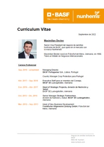Maximilian Becker nació en Fráncfort del Meno (Alemania) en 1986. Estudió Económicas y Derecho en la Universidad EBS de Wiesbaden (Alemania) y en la INSEAD Fontainebleau (Francia). Tiene un Master en Negocios Internacionales de la ESADE, Barcelona, España. Maximilian Becker se incorporó a BASF en 2013. Ha trabajado en varios puestos en la división de Nutrición y Salud de BASF, ha liderado proyectos estratégicos y ha sido Chief of Staff para un miembro del Consejo. Desde 2018 es Managing Director de BASF Portuguesa Lda., Lisboa (Portugal) y Head of Country Management Agricultural Solutions en Portugal. Antes de iniciar su carrera en BASF, Maximilian Becker adquirió experiencia en empresas de consultoría.
