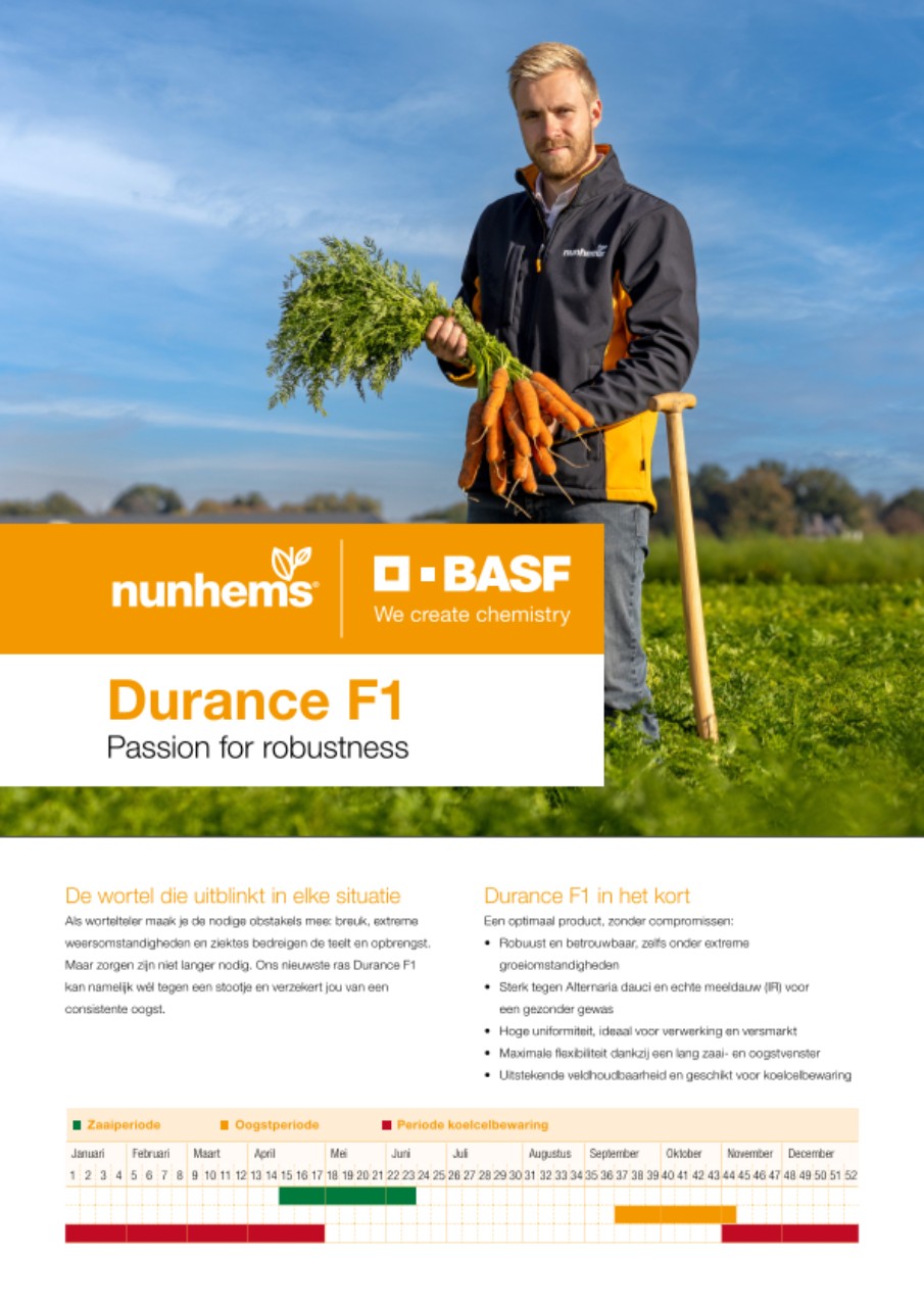 Met Durance F1 haal je niet alleen een sterke wortel in huis, maar ook een ras dat je in elke situatie ondersteunt. Dat maakt Durance F1 de nieuwe standaard voor telers wereldwijd.