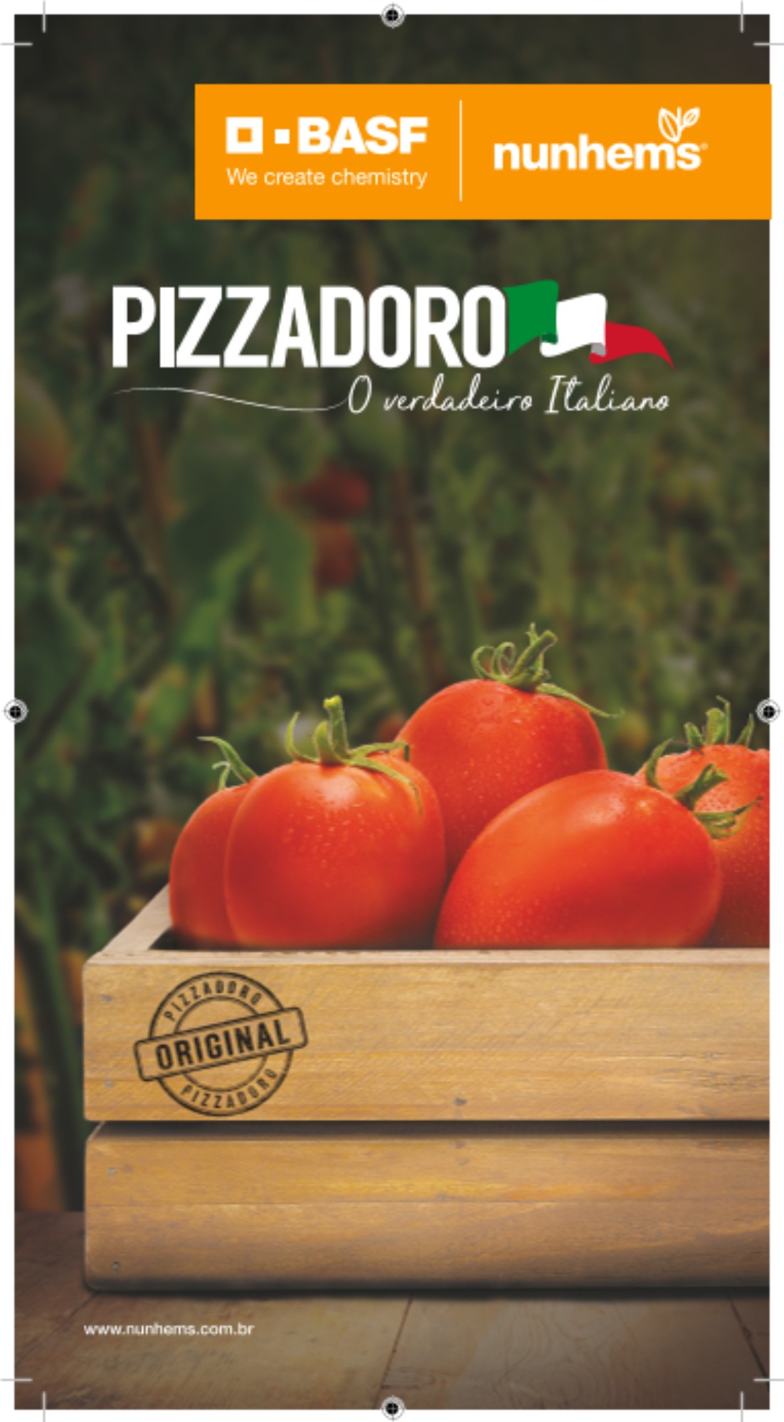 Pizzadoro é um tomate híbrido tipo saladete indeterminado de coloração vermelha intensa.