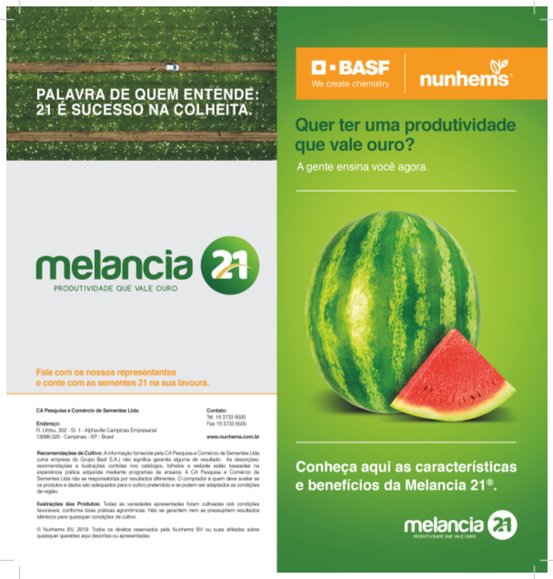 Para uma produtividade que vale ouro, invista em Melancia 21.