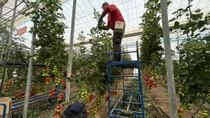 Em uma área administrada pela Nunhems, marca de sementes de frutas e hortaliças da multinacional alemã Basf, apesar do avanço tecnológico, o trabalho manual ainda é essencial: ali, três trabalhadores colhem tomates graúdos e vistosos.