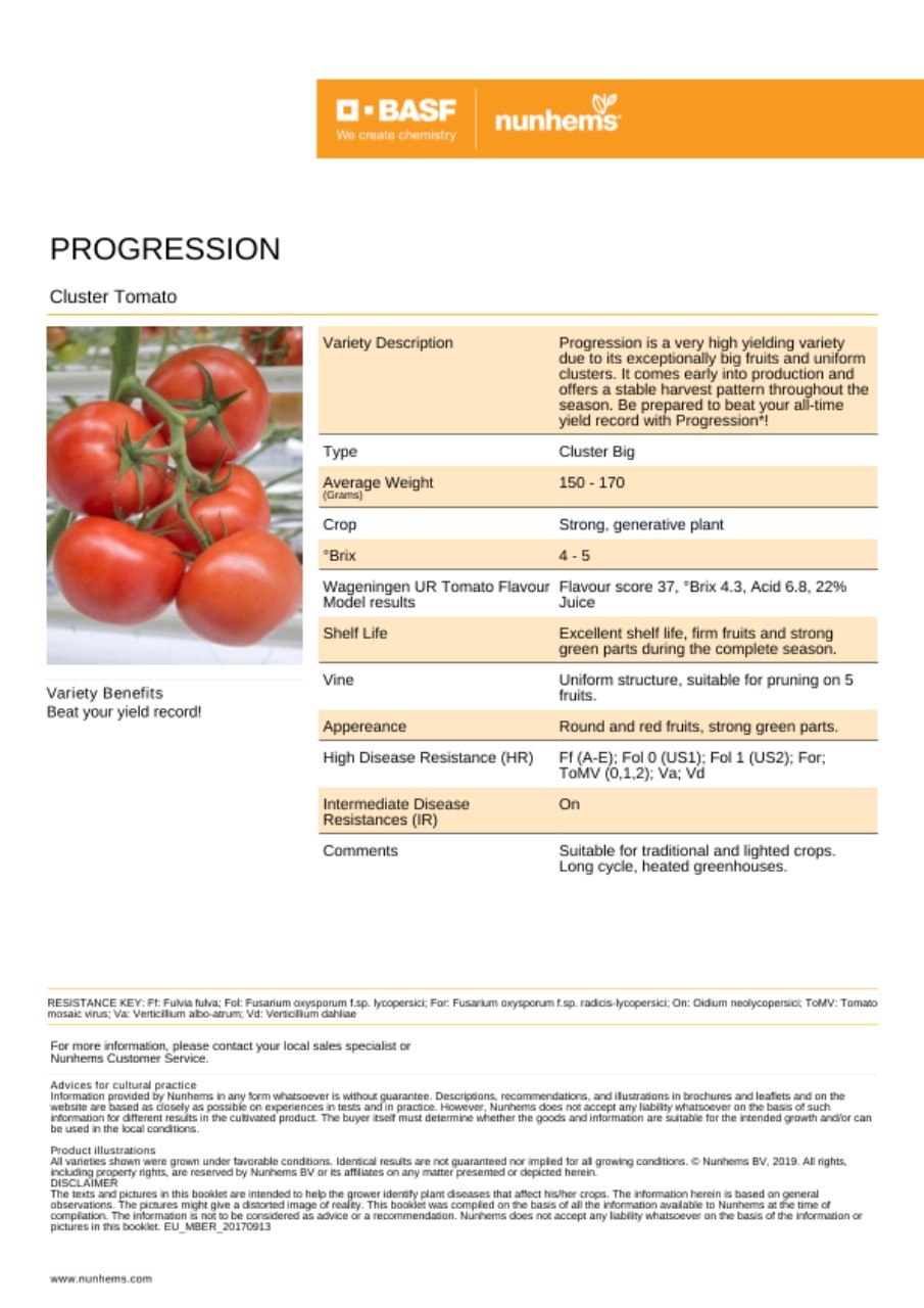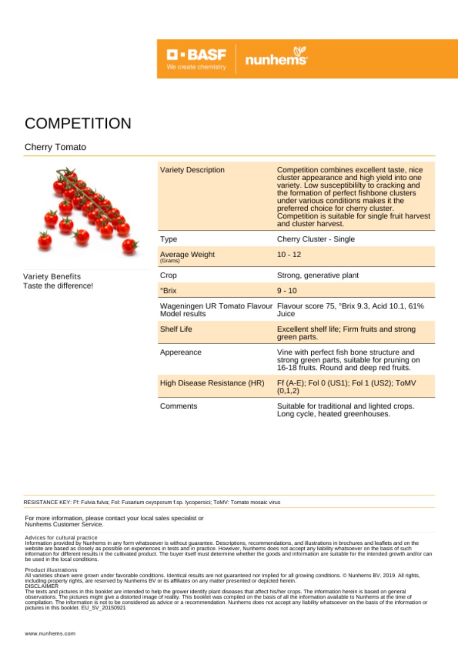 | Culturion F1* | Cherry Cluster | 16-19 g | Compact | ✓ | ✓ | HR | HR (0-2) | R | HR (0-1) | HR |