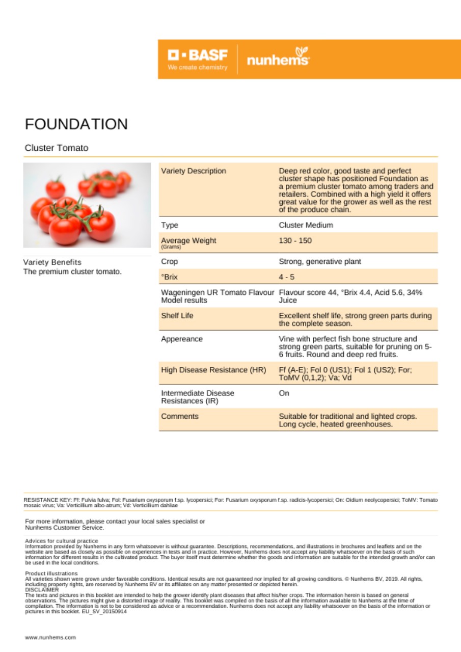 | Foundation F1 | Cluster big | 130-150 g | Strong, generative | ✓ | ✓ | HR | HR (0-2) | HR (0-1) | HR | HR | HR | ||