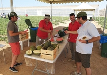 Coliseo F1* was one of the stars of the new edition of the Business Event For Experts on melons and watermelons organized by Vegetable Seeds between June 25 and July 4 at its experimental field station in La Palma (Cartagena, Spain), but by no means the only one. The seeds developer introduced a new Santa Claus melon with moderate resistance to the New Delhi virus for late-season transplants in Murcia, the NUN 68307 MEM F1*, a variety of outstanding quality, a high Brix level, attractive external appearance and towards the heavier end of the scale, weighing in at around 3.5 kilos. To round off the growing cycle in Murcia, Nunhems also introduced the Salgado F1 for mid-season transplants, a melon that offers excellent production, very uniform fruits towards the heavier end of the scale, excellent flavour and good post-harvest performance.