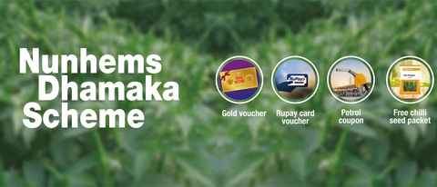 2) This offer is applicable only on packets of Kranti, US 1003, Priyanka, US 917, Soldier, US 730, Viraat, NUN 2074, US 611 & Ujala Chilli seeds produced and packaged by Nunhems (Hereinafter referred to as “Nunhems Chilli seeds”) and is subject to availability of Nunhems Chilli seeds stock at the dealer(s) / retailer(s) shop(s). In other words, Nunhems cannot be held liable or responsible if Nunhems Chilli seeds stock is not available at the dealer(s) / retailer(s) shop(s).