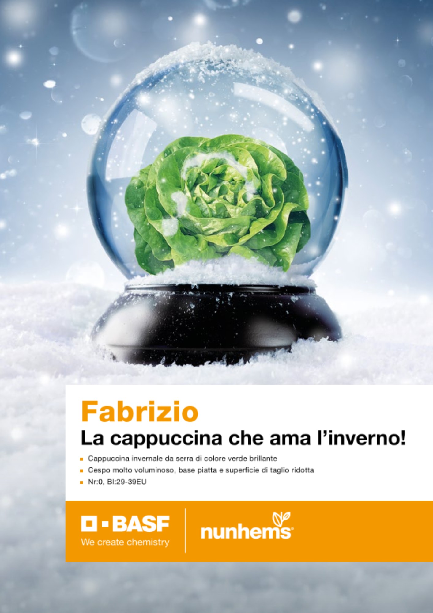 | Varietà | Resistenza alla Bremia (Bl) | Resistenza al Fusarium (Fol:1) | Resistena alla Nasonovia (Nr:0) | Dimensioni ** | Colore ** |