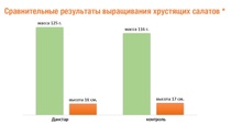 * Одновозрастные растения, выращенные на салатной линии при освещенности 8000 люкс (около 74 ватт/м2), температура 19 день, 17 ночь, продолжительность светового дня 18 часов, ЕС 1,9